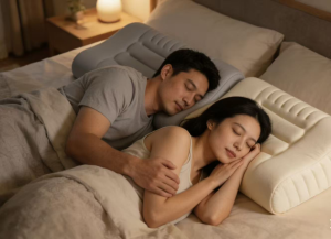The Li couple from New York were troubled by poor sleep quality due to inconsistent sleeping habits. Mr. Li likes to sleep on his side and hold his wife. However, Mrs. Li often complained that her arm was numb because her husband put it under his head. Later, they decided to try a double pillow with arm holes made of memory foam. After using it for a month, they said their sleep quality had significantly improved. Mrs. Li’s arm was no longer numb, and Mr. Li’s neck pain was greatly reduced. They said this pillow not only solved their sleep problems but also made their intimate time more enjoyable. This shows that choosing the right couple pillow has a significant impact on the sleep quality and overall health of couples.